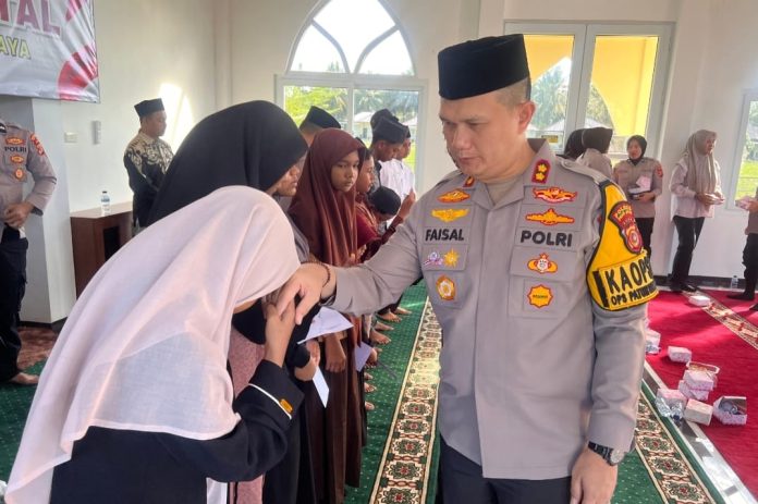 Pidie Jaya — Pancapena.com – Dalam rangka memperkuat pondasi spiritual dan menumbuhkan kepedulian sosial di kalangan personel, Polres Pidie Jaya melaksanakan kegiatan Bimbingan Rohani dan Mental (Binrohtal) yang dirangkaikan dengan pemberian santunan kepada anak-anak yatim, Kamis (24/7/2025), bertempat di Masjid Al-Fahri Mapolres Pidie Jaya.