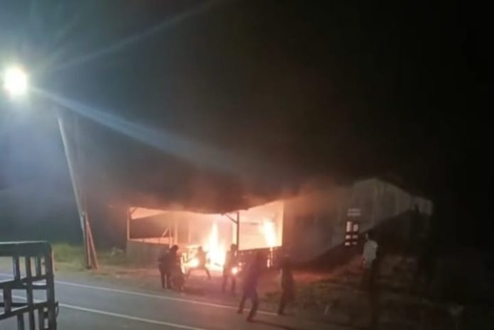 Usai Membakar Sepeda Motor, Sekelompok Pemuda langsung pergi Kabur Meninggalkan Api yang sudah mulai Membesar.