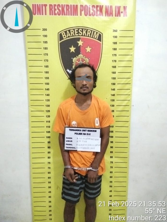 Kapolsek Na IX-X AKP Yustina, S.H., M.H. menjelaskan bahwa penangkapan ini berawal dari informasi masyarakat yang melaporkan adanya aktivitas peredaran narkotika di lokasi tersebut. Merespons laporan itu, Kapolsek segera menurunkan Kanit Reskrim IPDA DM. Manik, S.H. beserta tim untuk melakukan penyelidikan.