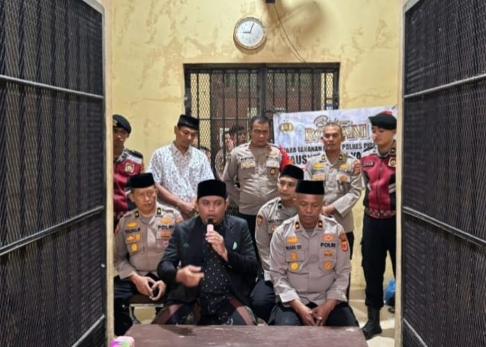 Pidie Jaya – Pancapena.com – Dalam upaya pembinaan mental dan spiritual para tahanan, Satuan Tahti Polres Pidie Jaya kembali menggelar kegiatan tausyiah dan nasehat agama di Rumah Tahanan Polres Pidie Jaya pada Kamis pagi, pukul 09.00 WIB.