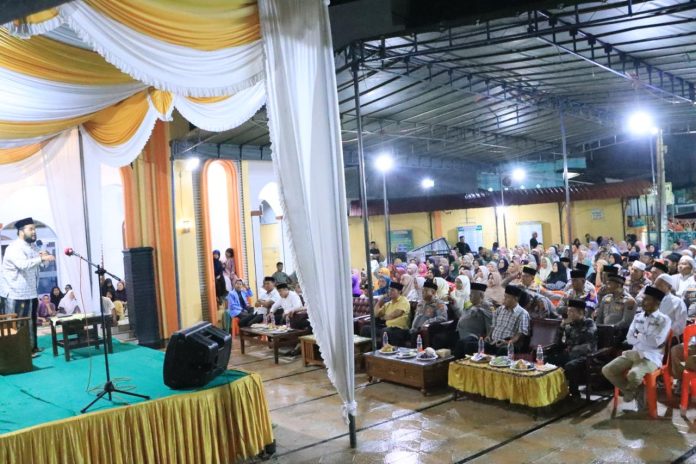 Turut hadir dalam kegiatan tersebut sejumlah pejabat daerah, tokoh agama, tokoh masyarakat, serta elemen masyarakat lainnya yang turut serta dalam menyemarakkan acara. Tausiyah disampaikan oleh Al Ustaz Abdil Muhadir Ritonga, M.Pd.I., yang membahas makna peristiwa Isra Mi’raj sebagai perjalanan spiritual Nabi Muhammad SAW serta pentingnya persiapan lahir dan batin dalam menyambut bulan suci Ramadhan.