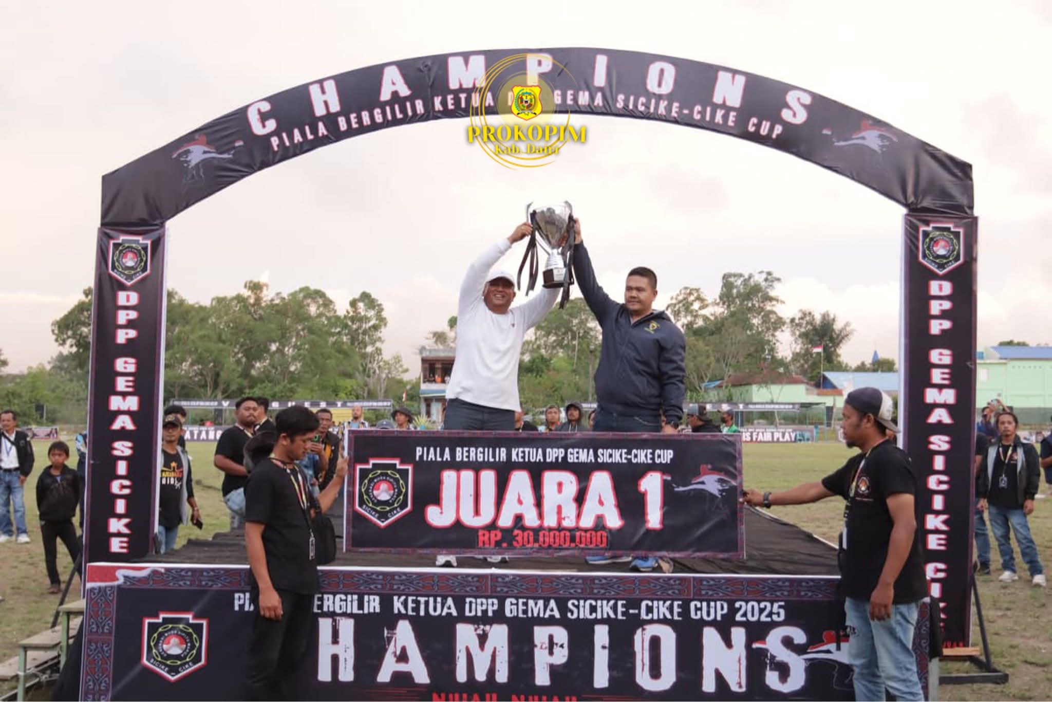 Dairi – Pancapena.com – Wakil Bupati Dairi, Wahyu Daniel Sagala, menghadiri secara langsung Grand Final Turnamen Sepak Bola Gema Sicike-Cike Tahun 2025. Minggu, (24/08/2025) yang berlangsung meriah di Stadion Utama Panji Bako, Kecamatan Sitinjo, Kabupaten Dairi, Provinsi Sumatera Utara, Indonesia.