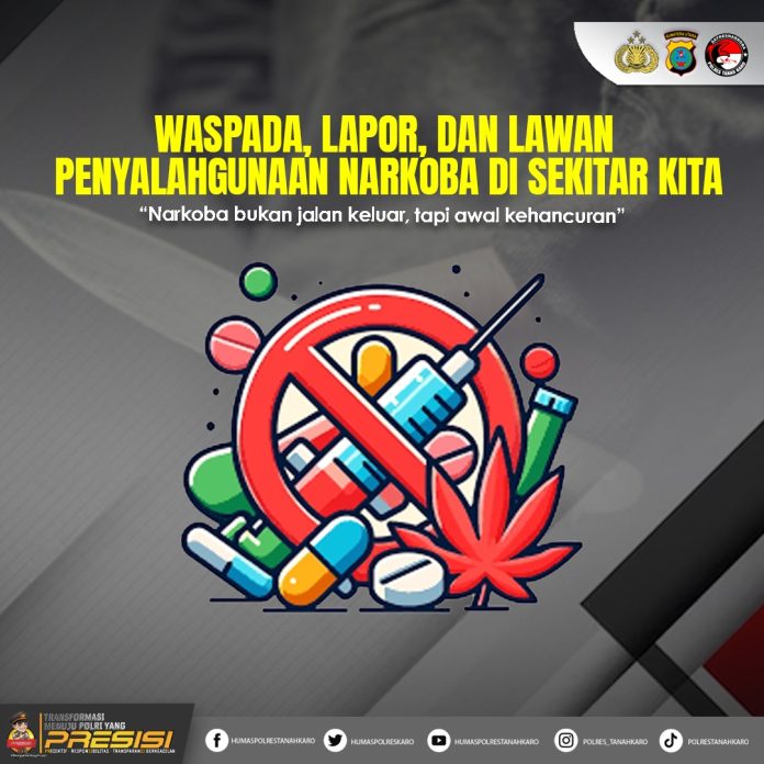 Karo — Pancapena.com – Penyalahgunaan narkoba masih menjadi ancaman serius, terutama bagi generasi muda. Untuk menghadapi tantangan ini, Polres Tanah Karo menyerukan gerakan kolektif: Waspada, Lapor, dan Lawan! terhadap segala bentuk penyalahgunaan narkotika di lingkungan sekitar.
